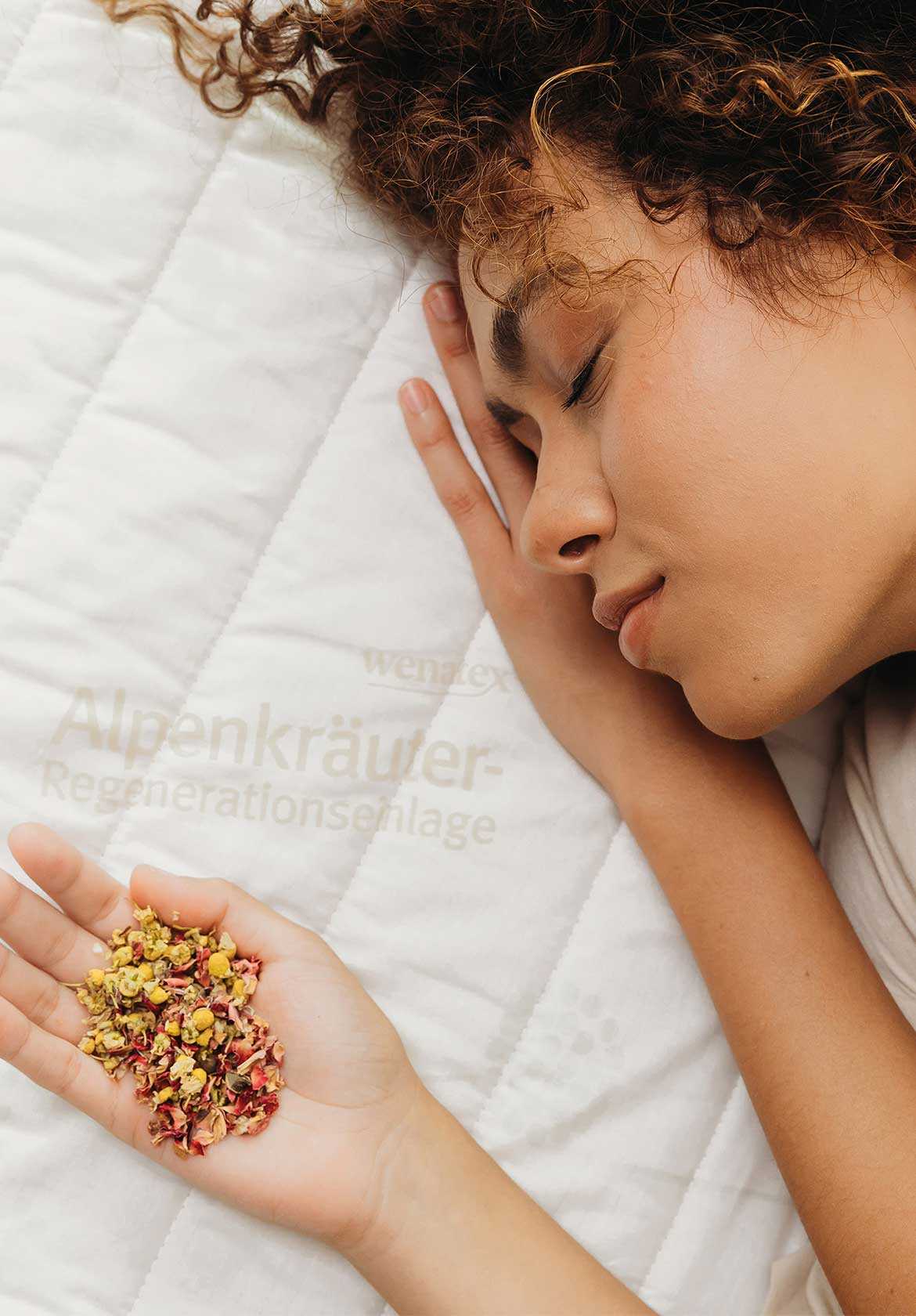 Nutzen Sie die wenatex® Alpenkräuter-Regenerationseinlage als Ergänzung zu unserem Schlafsystem. Das gesunde Extra für Ihre optimale Schlafqualität.
