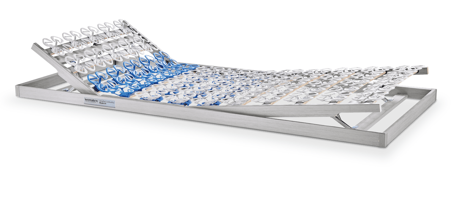 Der Lattenrost ist ein entscheidender Bestandteil jedes Bettes, indem er für eine optimale Unterstützung der Matratze sorgt. Der wenaFlex® comfortPlus KF enthält alle Vorteile unseres Standardmodells und darüber hinaus eine zusätzliche Wirbelsäule Unterstützung mit 3 Zonen. Sie sind flexibel, einfach und unabhängig voneinander auf Ihre Bedürfnisse einstellbar, um Ihren Körper sowohl im Schlaf, oder auch beim Lesen im Bett und vielen weiteren Positionen bestmöglich zu unterstützen. Er beeinflusst nicht nur den Liegekomfort, sondern trägt auch maßgeblich zur Ergonomie und zur Entlastung des Körpers bei. Die Auswahl an Lattenrosten am Markt ist groß – von klassischen Federholzrahmen bis hin zu modernen Systemen mit Tellerfedern. Dabei setzen wir auf höchste Qualität in der Verarbeitung und neueste Technologie, damit Sie Ihre nächtliche Ruhe erholsam verbringen können. Unser comfortPlus KF ist vielseitig verstellbar, um zusätzlichen Komfort und die nötige Flexibilität zu bieten.